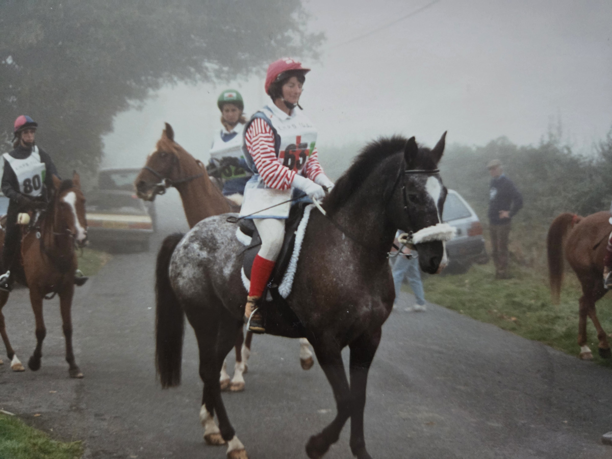 Pat has ridden since the age of five, but her endurance career began after moving from Suffolk to Cheshire in 1977. Answering a local newspaper advert to exercise hunters led to her first endurance ride in 1978 on the mare Treble Chance, a 40-mile Exmoor qualifier. From that moment, she was hooked. She went on to ride for several years before purchasing the iconic Blue ‘G’, beginning a partnership that would define much of her early success.